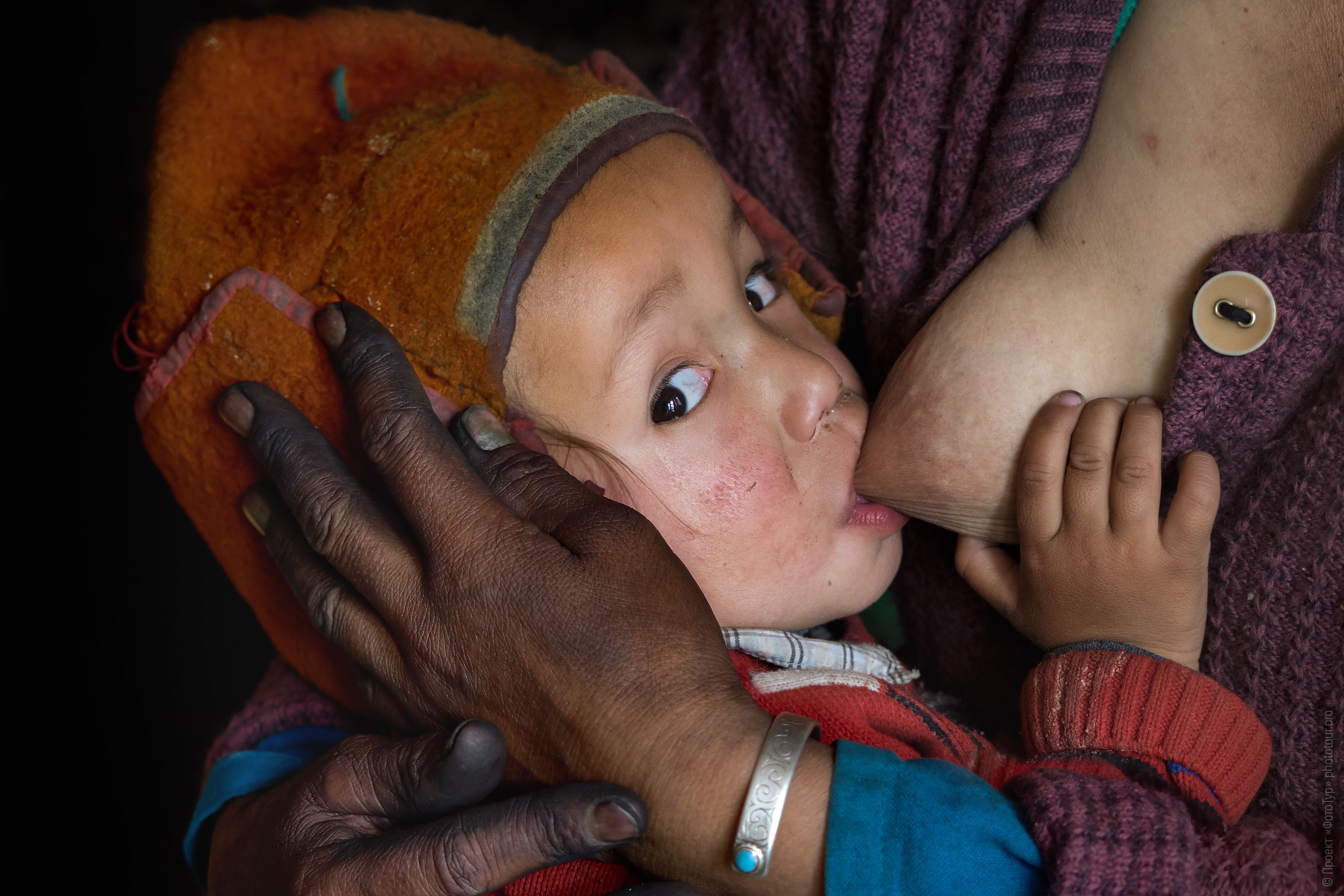 Кстати, вот эта оранжевая шапочка на ребеночке - это отличительный признак женской одежды Занскара, такой очень говорящий головной убор.