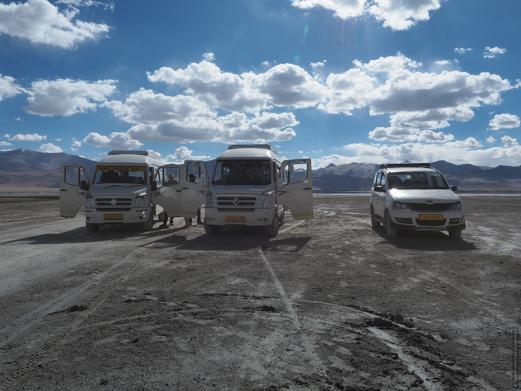 А тут нас еще меньше и потому, что мы приехали на высокогорное соляное озеро Тсо Кар и все разбежались, не смотря на высоту почти 4 800 м.