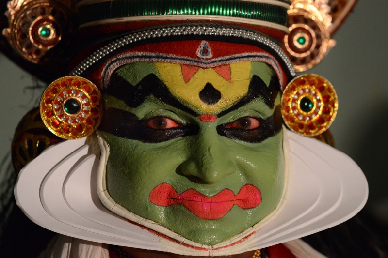 Катхакали или Катакали (в переводе с малаялам "представление рассказа"), традиционное драматическое искусство Кералы. Истоки Катхакали — народная драма и танцы, которые исполнялись керальскими крестьянами. По-настоящему Катхакали происходит на открытом месте в лунную ночь и длилось до рассвета. Катхакали исполняется мужчинами, которых готовят в специальных школах. Обучение начинается с 11-летнего возраста и продолжается 5-6 лет. В состав труппы артистов Катхакали обычно входят несколько танцоров, оркестр из четырёх человек и два-три исполнителя речитатива, излагающие изображаемый сюжет. Основная роль в Катхакали отводится пантомиме и языку жестов.... Кстати, в том представлении, на котором мы присутствовали - одной из исполнительниц была женщина. Но она тоже гримировалась под мужчину, исполняющего женскую роль.